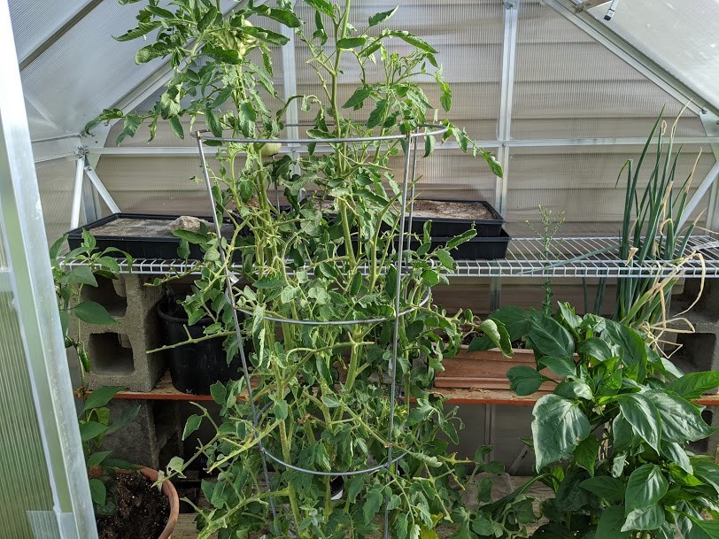 Bucket challenge plant looking better after being ravaged by hornworms a couple of weeks ago and not getting watered well while I was gone on vacation. Couple sets currently on it