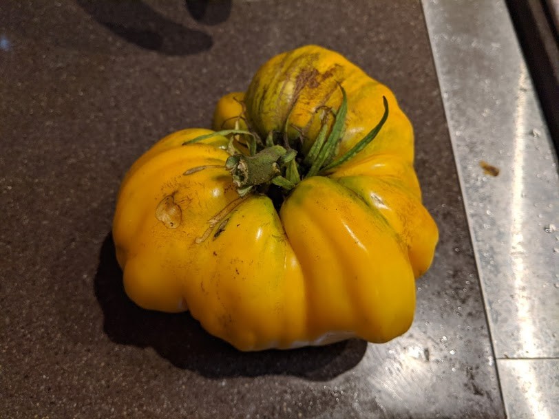This one was from Ned's 5.53 Delicious wasn't expecting it to be yellow. Neglected plant that was grown for eaters that has a few this size on it. 19" 2 lbs 5 oz. Couldn't get the plant of this variety in the competition patch to throw a mega all year so finally let a couple common ones go. Culled down to one a couple weeks ago so will see how it ends up.