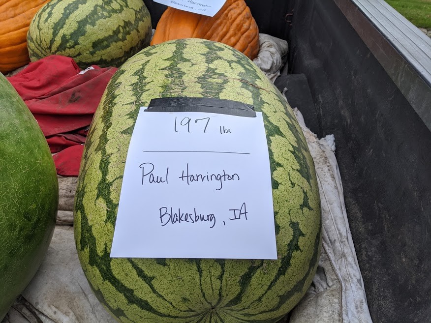 New personal best watermelon today at Anamosa weigh-off beating my previous best by 25 lbs. Curious what the official site OTT will end up being. I had it measuring 175 in the patch so went heavy for me. Grown from my 172 from last year. Have one measuring bigger left in the patch. If I can get lucky enough for it to go heavy might have a chance of breaking 200 lb goal.