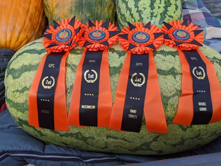 Pretty good day winning watermelon, marrow, bushel gourd, and tomato categories. Now time to start cleaning up the mess of vines in the garden.