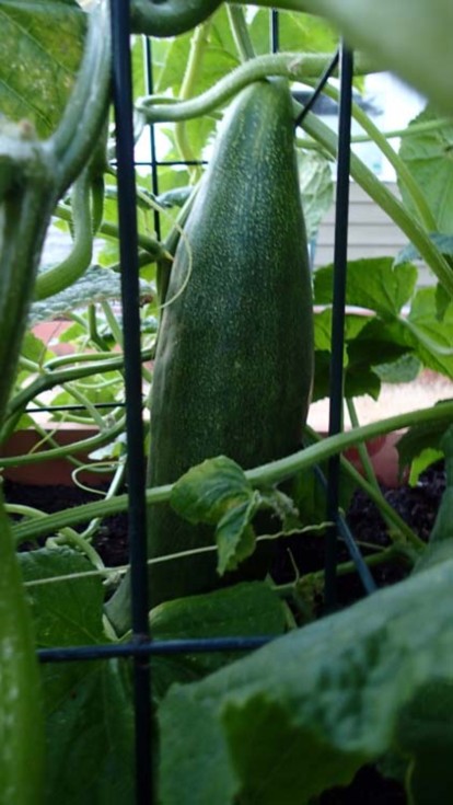 I've really been sand bagging lately with my Barratt Heavy Cucumbers, lol! This one is due to be culled tomorrow and is about 18 inches long. It's growing at a bad angle near the center of the plant.