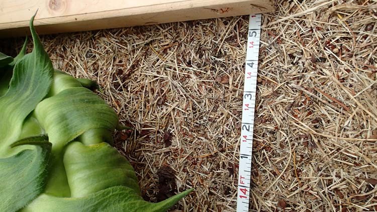 Even though my sunflower was damaged, I measured it anyway. About 14 feet, 5.5 inches.
