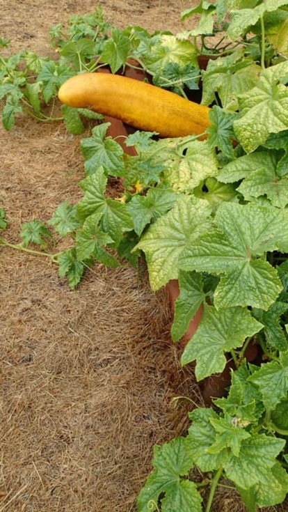 Bin Buster, such a happy cucumber, growing outside the bin!
