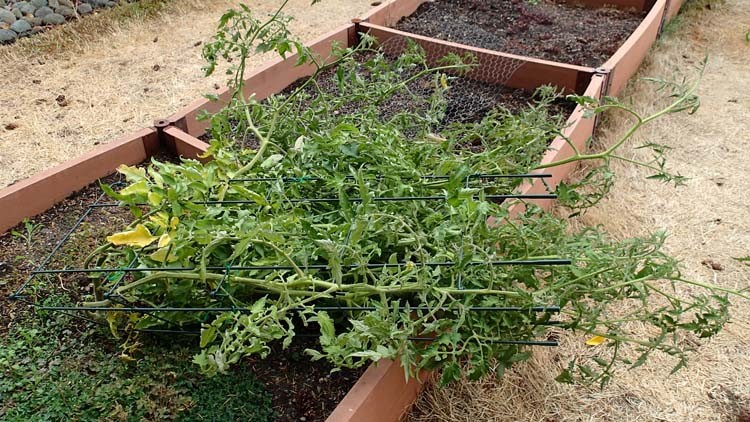 Just about the time I thought I had a nice handle on things again, I walk out to the garden and see one of my 3.87 La Rues laying on the ground!!!! It wasn't like this a few minutes ago!!!! The wind blew the whole tomato cage over!!! O-M-G!!!!!!