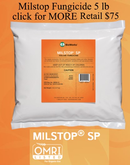 The Illinois auction will be held on 2/25/22 This item ships to you for free and is only available to residents of the continental states 5 pounds of MILSTOP� SP Organic fungicide retail value $75 Please read and understand the information https://bioworksinc.com/milstop/ Kills Powdery Mildew on contact. Provides 1-2 weeks of residual protection. Dissolves in water. No visible residue, dries quickly and cleanly. Cost-effective; comes pre-formulated with surfactants. University tested and proven to be effective. MilStop SP is an OMRI Listed product.