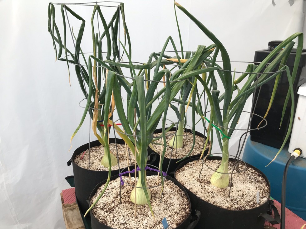 My biggest onions planted into 10 gallon fiber pots set up the same as autopots. Aquavalve installed.
