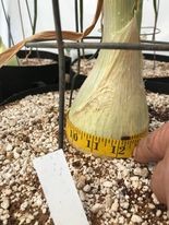 White markered onion increased 1.5 inches in two weeks. This one had some trouble at transplanting. The root ball fell apart, but she has hooked on and is gaining nicely.