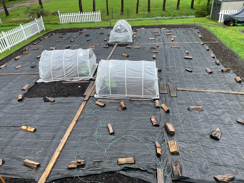 Yesterday we put up the 20� mesh electric fence so we can leave the hoops opened on warm nights. This is so easy to use and relatively inexpensive. We have been using it for 4 summers and it is still in great shape. We got it at premier1supplies.com and they call it VersaNet.