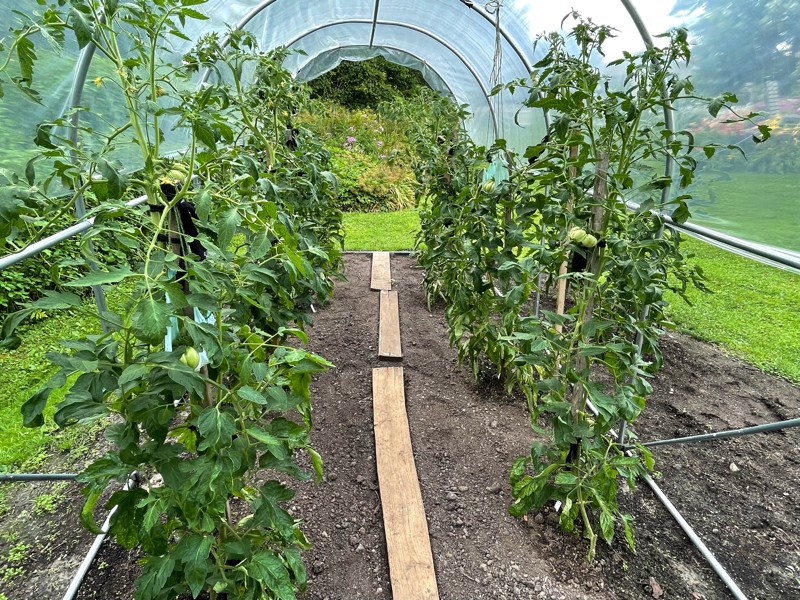 Tomatoes are starting to swell. We are seeing a bit of black like blossom end rot but not on all plants. It also seems thin and may peel off as it dries.