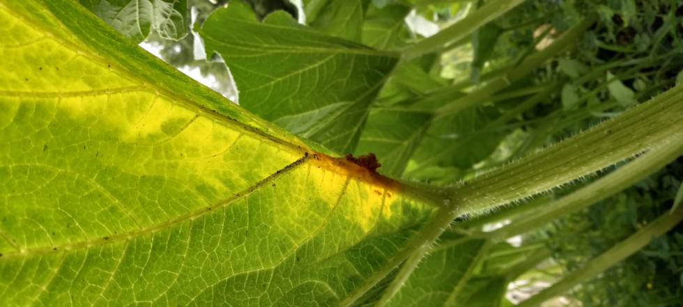 At 1st glance I saw a broken leaf vein. I must have done that weeding last time.