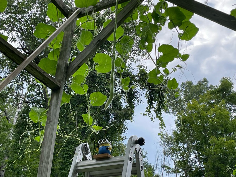 Here is our one and only long gourd on the 157 Ansems dmg 2021. She is 14 days old today and 44 inches long. Look out for this one if we can get it to finish solid.