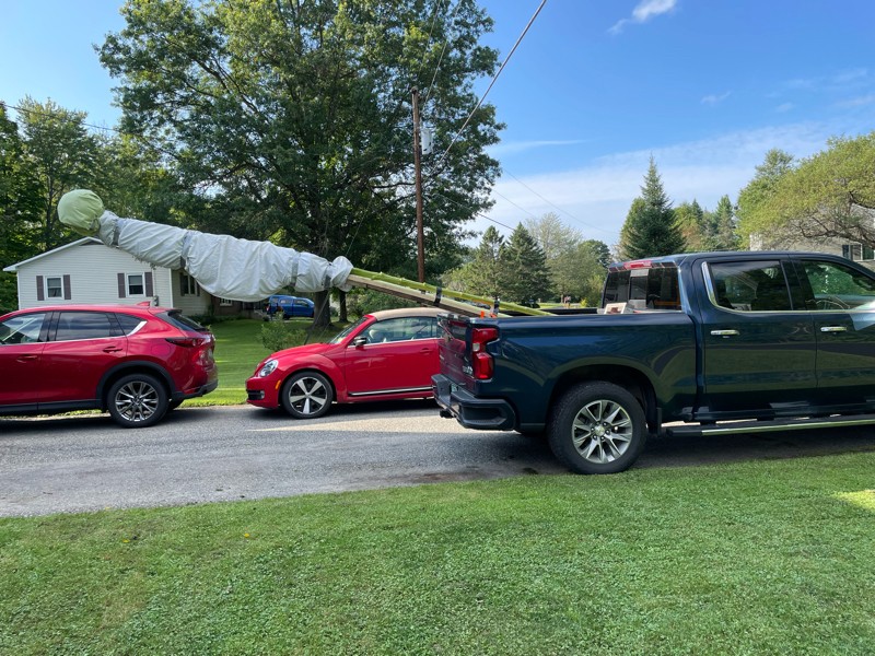 What your truck with a 58� bed looks like with a 16 foot sunflower and a 10 foot long gourd in it heading to the Champlain Valley Fair.