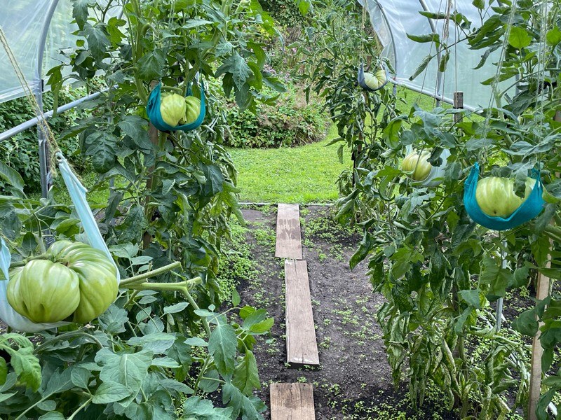 The tomato hut is still growing well. Can�t compete with Porkchop but not too shabby for northern Vermont.