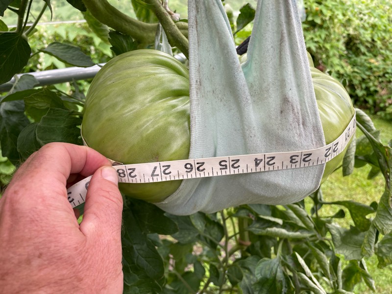Here is a beauty off the 6.55 Rose at 28 1/8 inch circumference. This is the second tomato on this plant. The first tomato, which was lower on the plant, went 4.6 pounds at our local fair. Plant is a grower!
