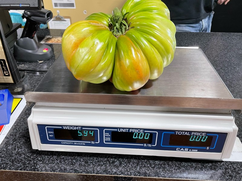 Weighed our first official tomato tonight. Hopefully bigger to come. This is from the 9.05 Brown. We have one more 9.05 in the patch that is younger and fatter which hopefully will go bigger.
