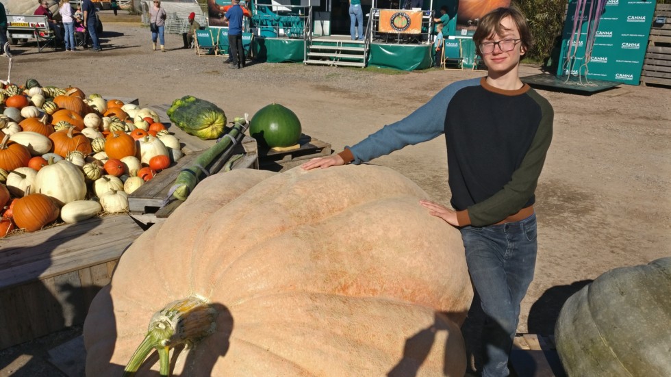 Oliver waiting patiently by our pumpkin at the Sunnyfields weigh off today. Weather was perfect and great to see everybody there.