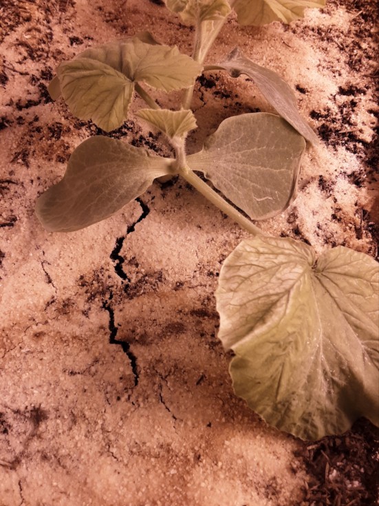 The thing about these tray-type setups is that if the dirt gets pushed around at all, big cracks will form and presumably this isnt great for the roots. Here, I thought the dirt was resting (hanging, really) only on the plastic but it was also resting on the bottom of the tray. I know the way Im saying this isnt going to make much sense. Long & short of it is that I want a healthy mat of roots and I dont want the soil to be cracking like this, just because it can!