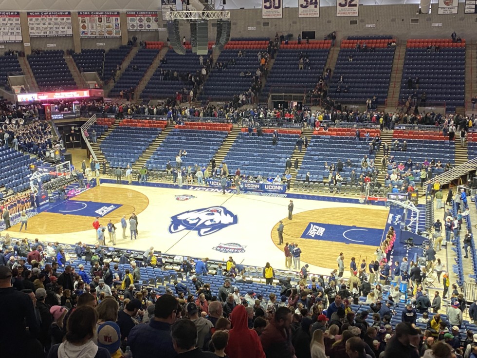 The ncaa tournament starts today. I took this photo back in February at the gampel pavilion, it is on the UConn storrs campus. There is not a bad seat in the place and the atmosphere is always electric. Since the whalers left we don�t have any pro sports teams in CT. Basketball is all we have here now. Many people especially older folks are more into the UConn womens basketball team over the men�s team.