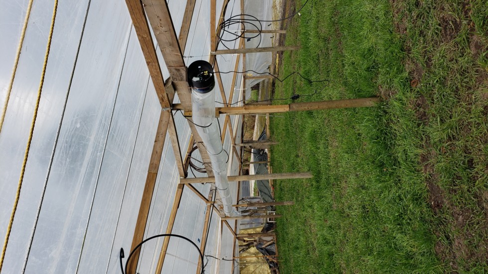 The CO2 distribution setup is installed. Now if anyone can tell me how to keep the greenhouse cool while I try to keep it enclosed to trap in the CO2, please let me know. It will be quite a juggling act as it is quite warm in there already and all the sides are not installed yet !!
