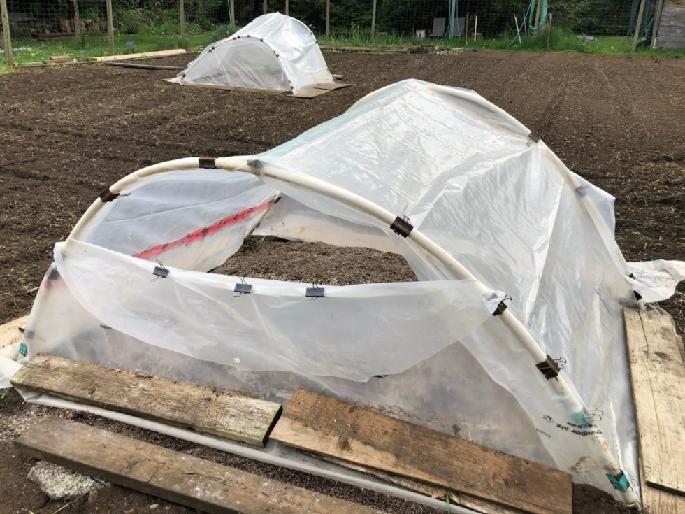 So we threw down some heat cables and covered them in a deep mound of Promix HP with mycorrhiza and a dash of some slow release 14-14-14, then put up our 2 smallest hoophouses to give the seedlings a 2 week overnight heated bedroom, after that it�s freestyle.