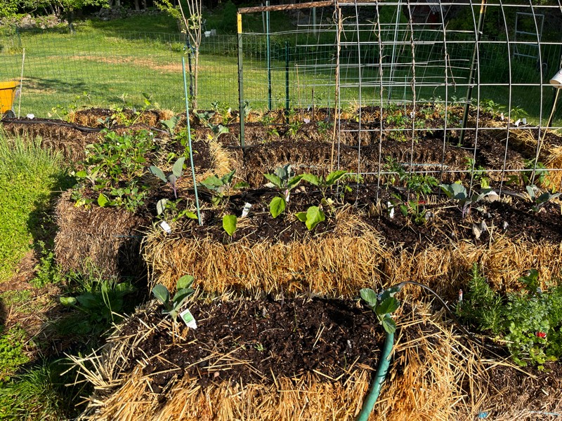 I�m doing the straw bale garden again and seeing if I can stretch last years bales for another year. I think it�s gonna work. I put some new bales next to the old ones so it will be easy to compare.
