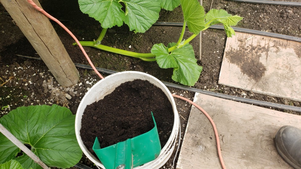I never touch the vine unless I'm removing a tertiary or the tendrils. When the vine lies flat, I mound a lot of soil on top of the vine.