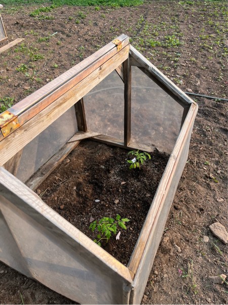 It�s been tough to find the time to get some maters in the ground. I guess the soil is warming up enough now. Hey a lightbulb went off. Instead of leaving my mini cold frames just lay around I think I will put them to work. Let�s see if they do ok in their happy homes.