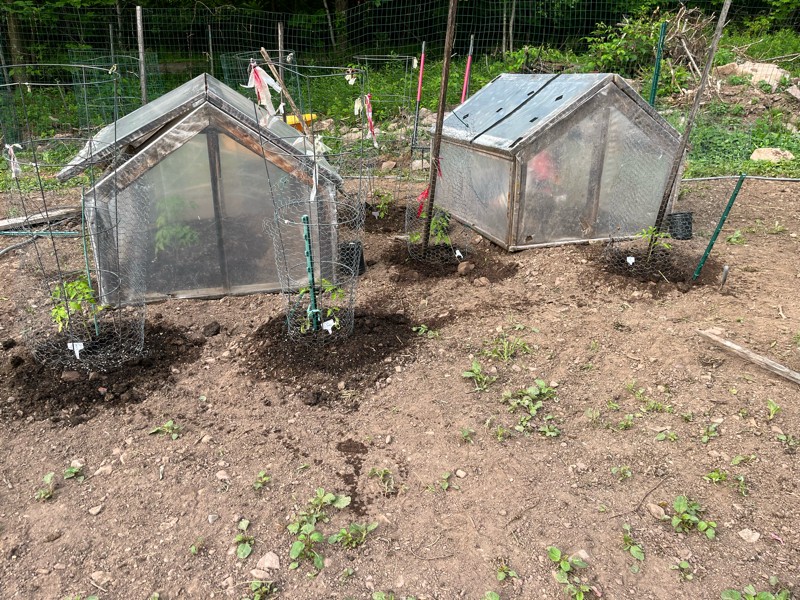 I put a few more tomatoes in. I�m liking using the cold frames. A couple I put only one in to assure they had enough space and one I gave a roommate. Then I put a couple plants on the outside next to them. I have a mixture of my own seeds with some Domingo�s, Megadom and my personal favorites this year, some MOMATES. I had some top notch seeds given to me by several generous growers but my late germination woes put we way behind. Some did sprout so I may have a few late ones to squeeze in.