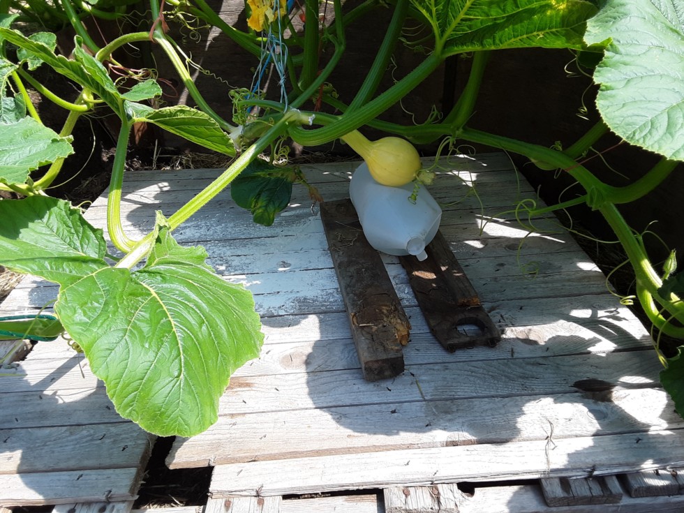 I learned my lesson: no sun-of-a-bee directly on her delicate squashkin-skin. She will be lightly shaded the rest of her days!