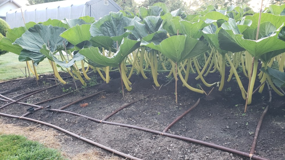 This picture shows the space left on the side of the patch to allow #6 secondary to grow into. Also note the sticks propping up the last leaves ( thank you Ian Paton) of each secondary as mine tend to flop over and kink the stem. Every leaf counts.