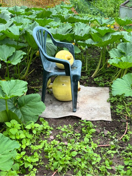I have 2 of my 839�s growing. One is in the Rocky part of the patch that I extended up this year. It will be a good spot to view from our porch and May let a few pumpkins grow on it. This is an early set on a secondary. It looks to have a nice shape and color that the 839 has been throwing.