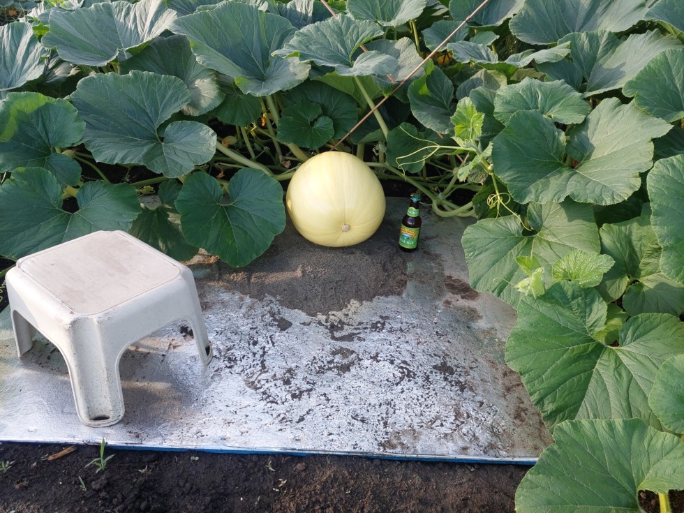 2342 16 dap. It had a very slow start, not much bigger than a softball at 10 dap, but its been growing fine now, 4.5" circumference the last 24 hours. It has some nice plant behind it so hopefully it speeds up.