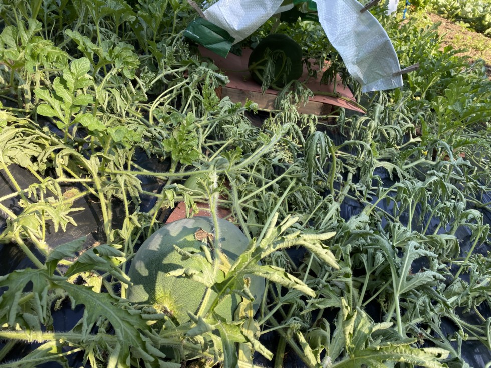 The fruit under the tent was my keeper on the main vine. The other one was a cull I didn�t see. Until after the plant died.