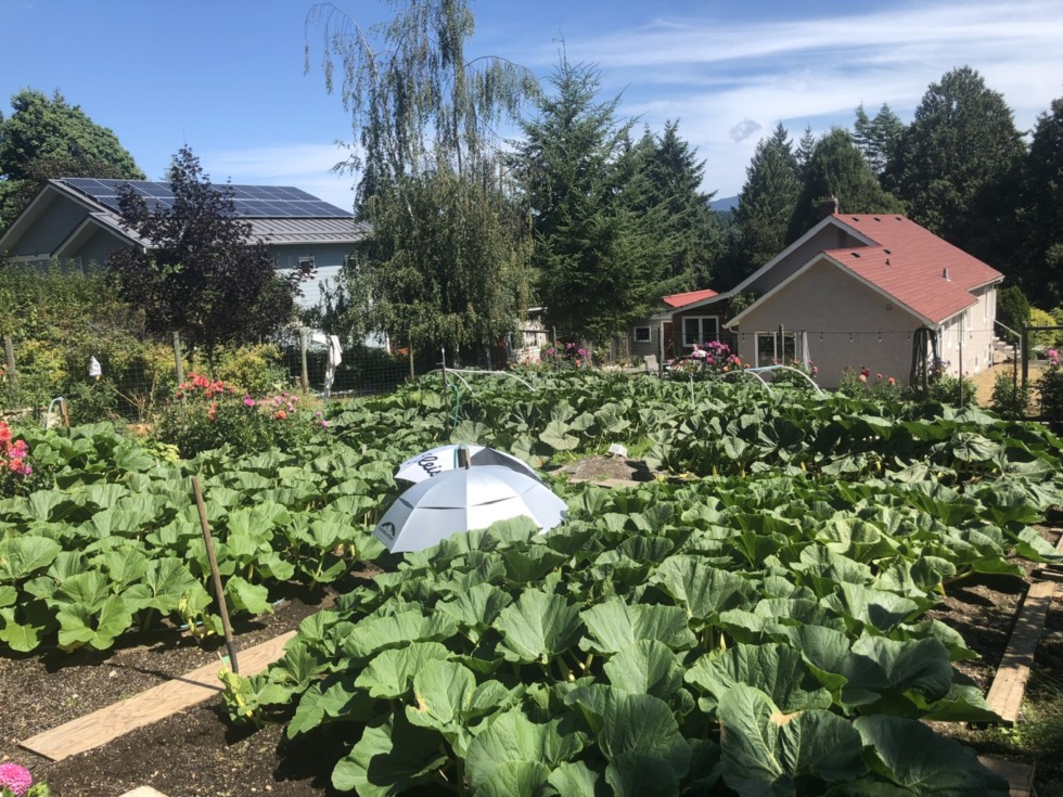 Down below the prizewinners, the competition plants have also almost filled in their growing spaces. Plants are still actively and aggressively rooting so we are still trenching ahead of the vines and then burying and covering them when they hit the ground and root at every leaf node. I�m seeing a lot of diaries where growers aren�t putting in the extra effort to bury/cover or otherwise encourage all the adventitious roots that form below and above all the way along the vines. Yup, it�s alot of tedious work and I recently said to my growing partner that when the time comes that I can�t get on my hands and knees in the patch to bury my vines, we will stop growing.