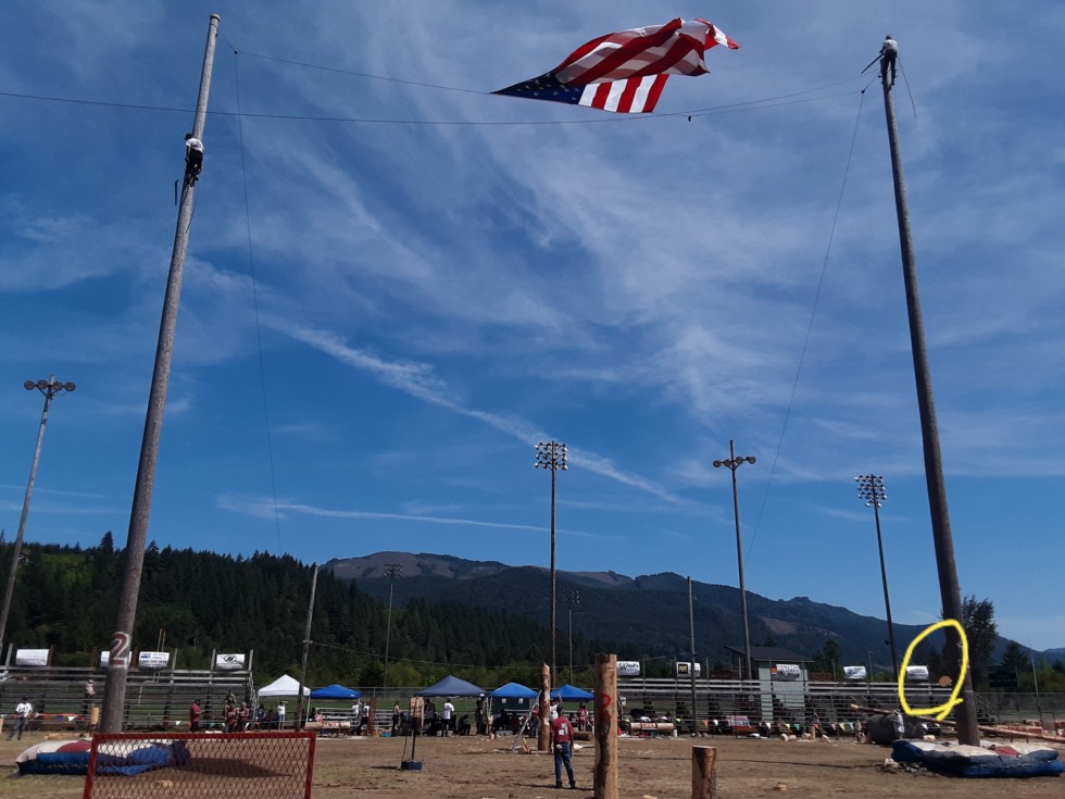 Logging competition. Lumberjacks and lumberjills, showing off their skills.