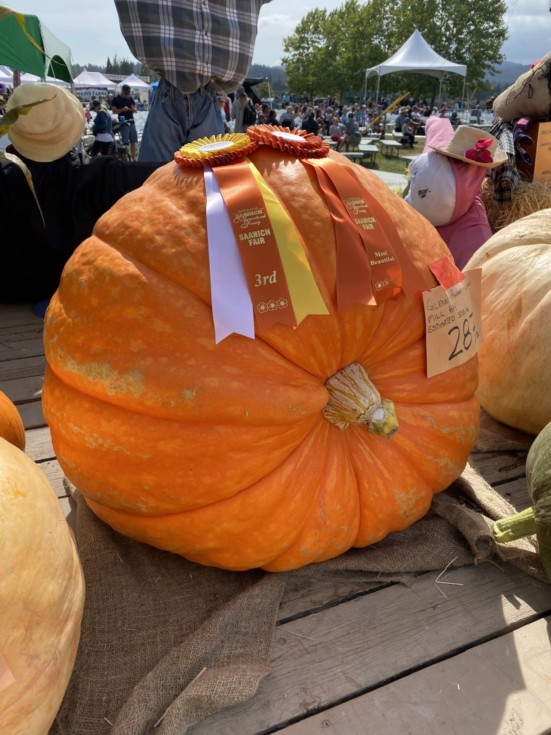 First bling bling of the season is a 3rd place (again) at the Saanich Fair with a Prizewinner, not only that, it was judged most beautiful entry and that is always a bonus. Some cash and 2 ribbons is a win for us. Estimated at 303 lbs, this one came in a little light at 287 lbs. (around 5.5% light).