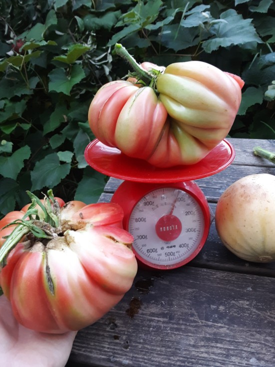 4.42 lbs off the 7.88 Butler I believe. Had to cut it in half to weigh it on my kilo scale. This was the best of my 2nd round tomatoes, so this was a first truss blossom. Not a terrible result but if I took better plant care of the plant early on it might have weighed in the 6-7 range.