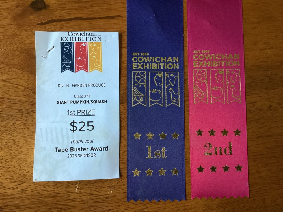 We took 2 prizewinners to the local Cowichan Exhibition and brought home a couple more ribbons for the display in our gardening/pumpkin shed.