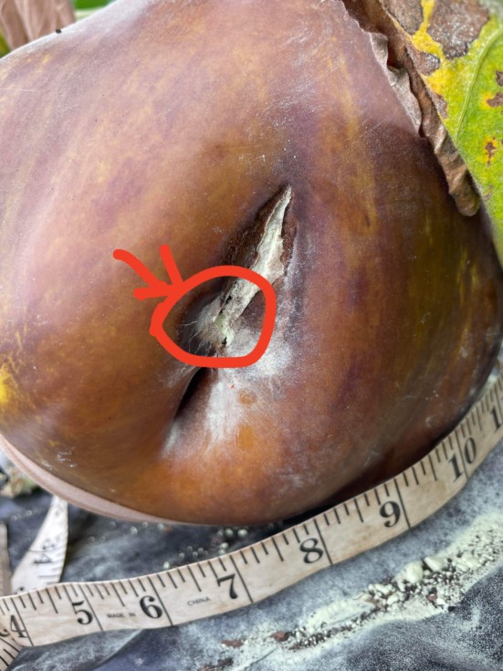 And soft spot in question. Things i learnt about giant aubergines this season:. 1. Cracks aren�t fatal but you are on borrowed time. 2. They blow up. Pretty sure I went from 15 plants to dmg on all (but trying to hold for a given date) with wilt, splits and soft rot 3. Competitive lines are yet to be established. This came out of a generic seed packet from France (monster of New York) 4. Megablooms are rare, but not unheard of. 5. Seed production is poor. There were just 8 viable seeds out of the 3.7kg fruit. More from others but less than tomatoes. 6. A lot of plants just got Verticillium Wilt. Grafting might help. 7. Splits aren�t just from watering. Soil nutrients, temperature extremes as well as watering can all do it. Any questions just shout. Although I�m not talking to aubergines right now�
