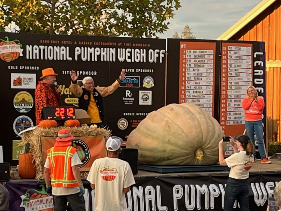I won !!!! at Bishop's Pumpkin Farm in Sacramento. 2212 lbs. It has become the largest weighoff in the world !! There were 58 entries which might have broken a record. Brian Myers and all the people involved couldn't have done a better job. Many thanks to all of them.The long 950 mile drive was well worth the effort. Now onto Half Moon Bay.