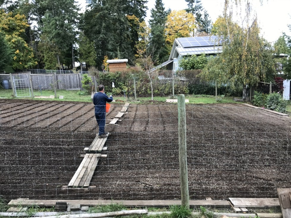 50 lbs of fall rye seed had been spread and now we�ve had a healthy rain to get things started with germinated. We are 2 weeks behind last years schedule, I hope that does not affect the germination rate or growth of the cover crop, but time will tell.