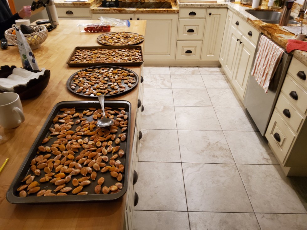 The 2183 has been an amazing plant. It grew aggressively and was relatively resistant to disease. It grew into a nice shape. It was solid and tough. Cut off the vine on Sept 24th. Transported to California and back to Canada. On display through hot and freezing weather and still did not have 1 soft spot or blemish when we cut her open 38 days later for seeds. And now it's giving more seeds than any other pumpkin I've grown....about 500.