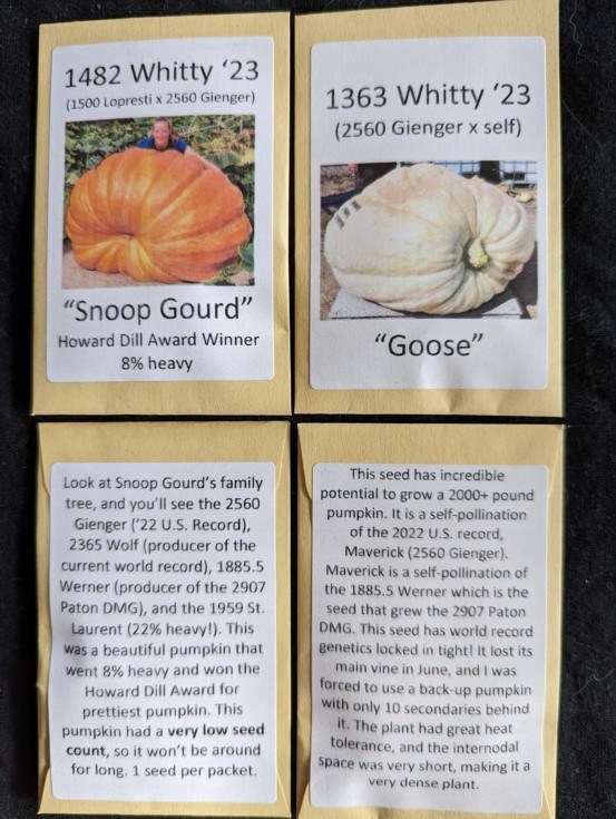 CTGPGC AUCTION LOT 18 NOTES FROM SARAH WHITTY ON HER 2023 PUMPKINS