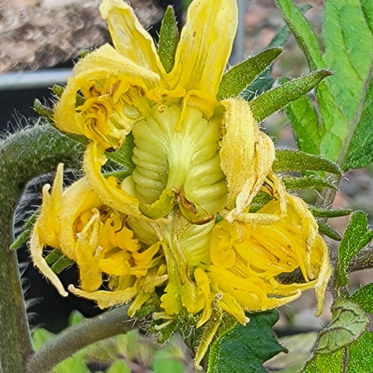 Still have a few tomato plants outside limping along. The survivors from from my seed soak experiments. Been pretty cold (by SoCal standards, lol) & gray so it's hard to make any conclusive findings. This nice truss 1 mega showed up & perhaps maybe even set. It's from one of my underwhelming 9.06 offspring fruits from last season. Not expecting much cuz of the recent temps & lack of sunlight, but will put an asterisk next to this soak cocktail.