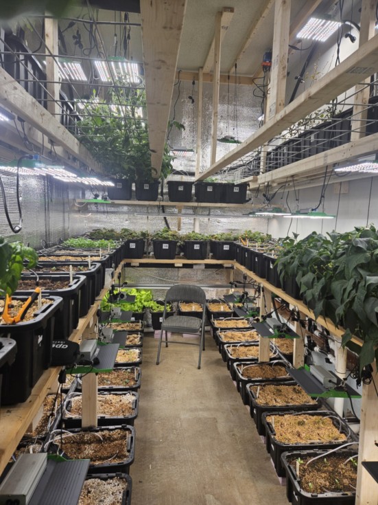 Just got back from helping my son redo his grow room,it's 8x16 with 100 totes of all different kinds of vegetables and fruits. Tomatoes and cukes are grown horizontal on 2' wide stock panels so the fruit hangs down below and easy to pick plus its much easier to get enough light to the plant and no clips,strings or anything.