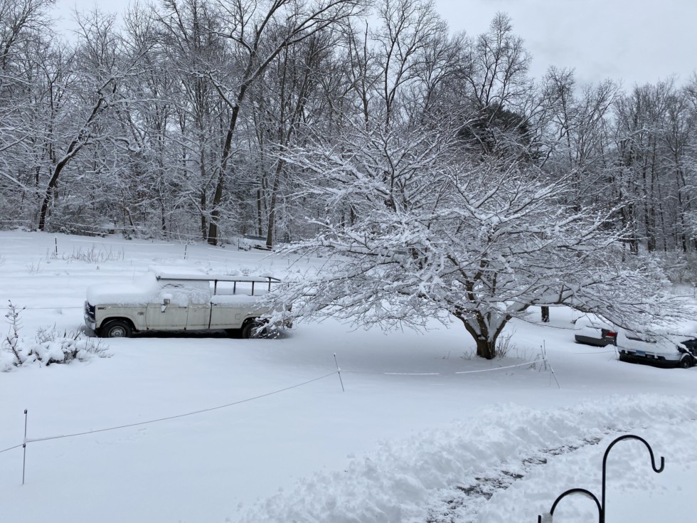 Another shot of the snow. It has been an easy winter so far and there is no frost in the ground so this will make for a big clean up come spring.