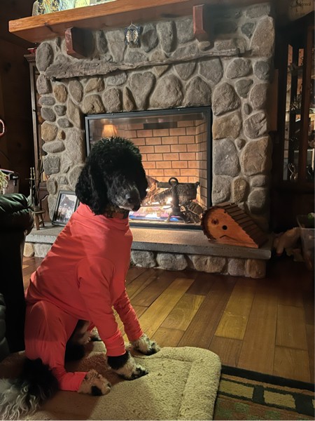Curly is all set in his pumpkin suit but it's not spring yet. Might as well enjoy the fire Curly. We will be in the garden soon