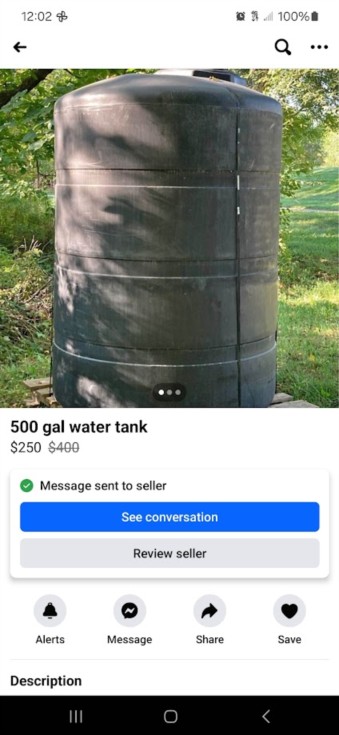 Been watching marketplace since last year. already had one I was emptying daily, now I got 2 with a total of 1100 gallons capacity.