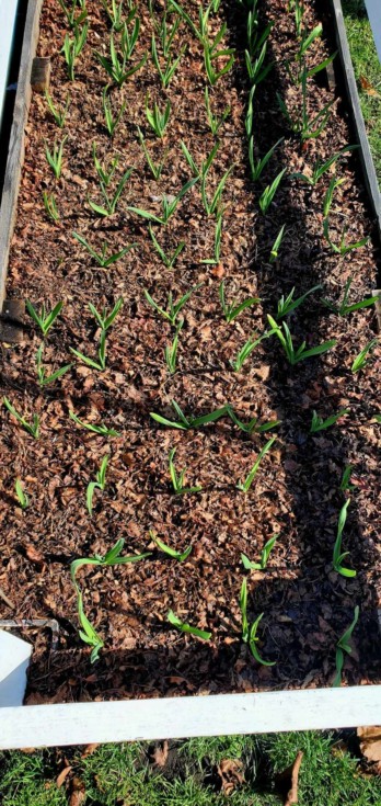 Garlics are about 4 inch tall. Weather has been very warm for this time of the year but we are not out of the woods yet. Heavy frost forecasted for tonight. Need to cover those babies. Welcome to Wisconsin