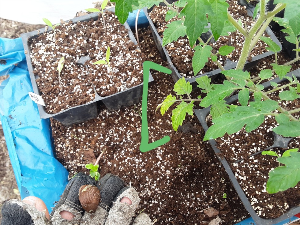 This tomato leaf is showing some yellow. Which could be low nitrogen. But I think its low nitrogen caused by cool temps or low energy because too much energy is going into the roots? Not sure how I could fix it from a nutritional standpoint, there might be a lot of nitrogen in the soil... its hard to tell anything during cold weather. The microbes in the soil want to hit the snooze button and wake up a month from now, and who can blame them. It could be low magnesium too. I might go that route first.